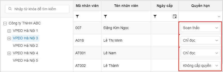 Quản lý một ghi chép xem có những nhân viên nào được phân quyền đọc hoặc chỉnh sửa