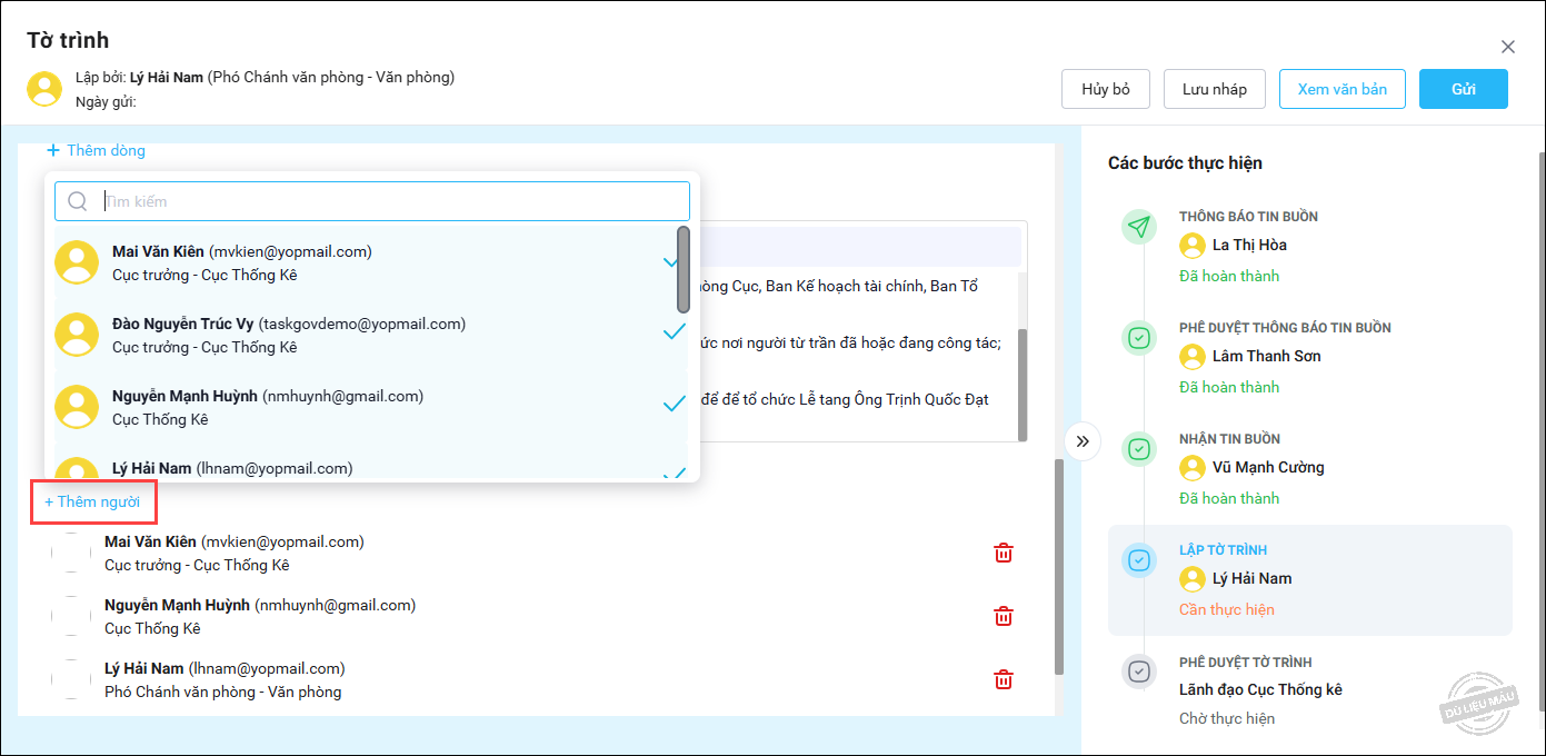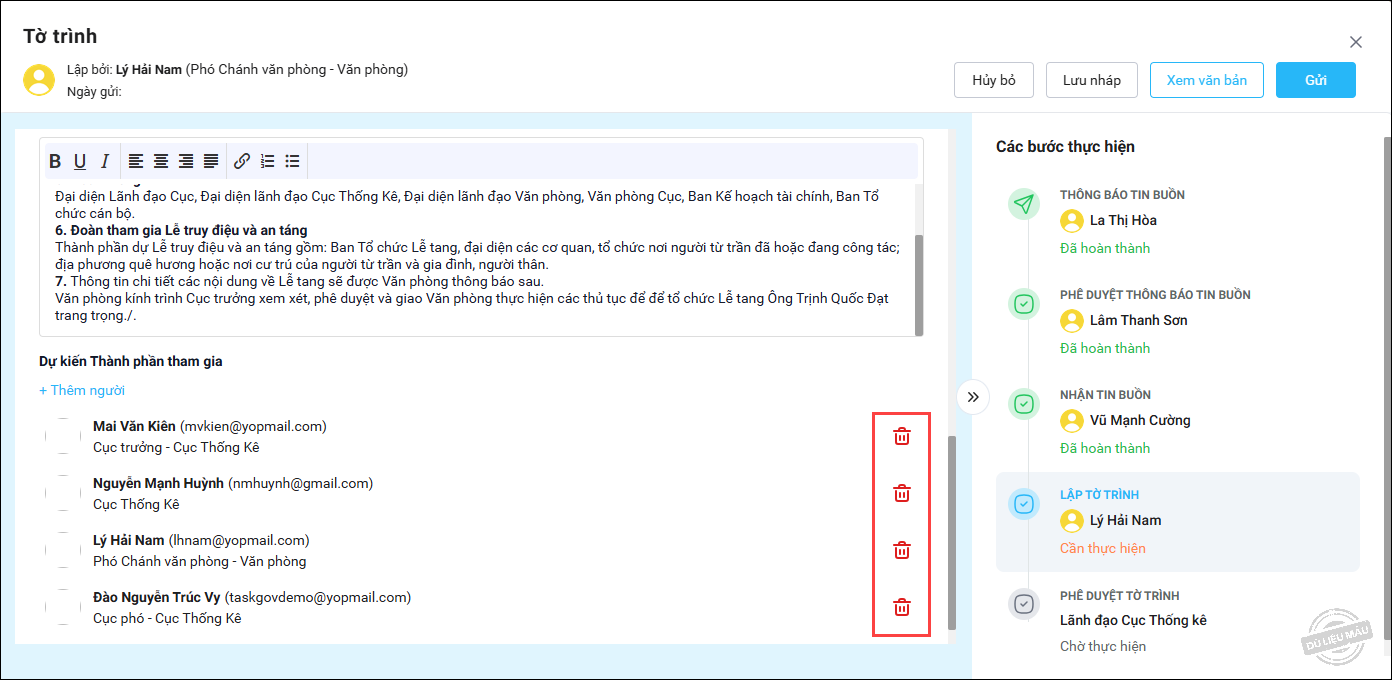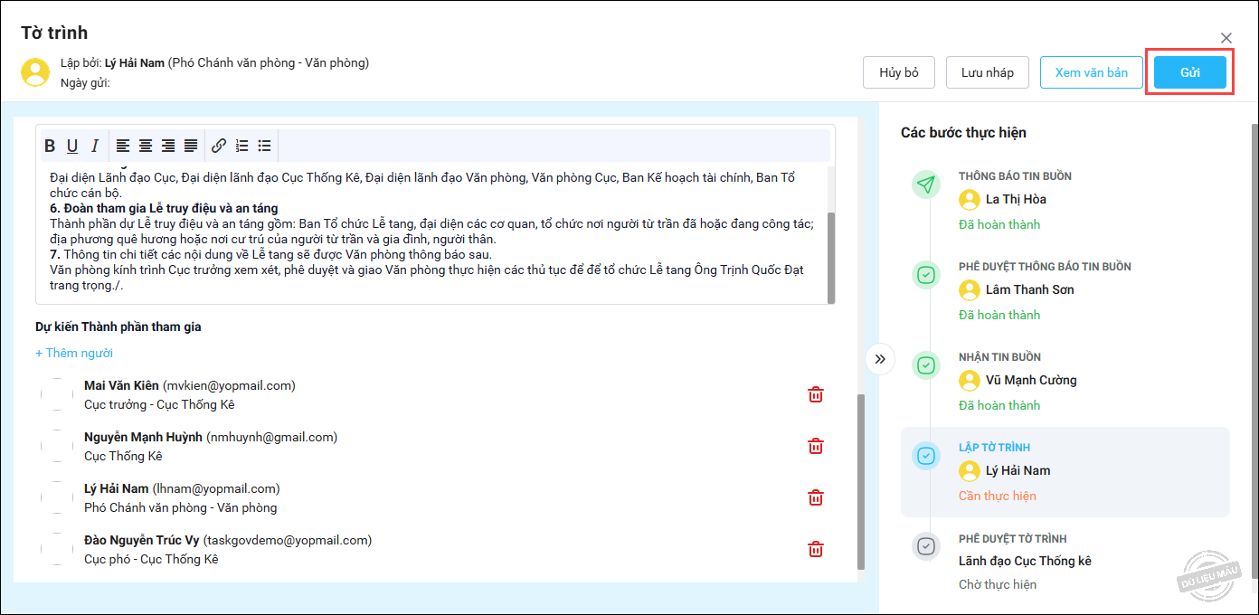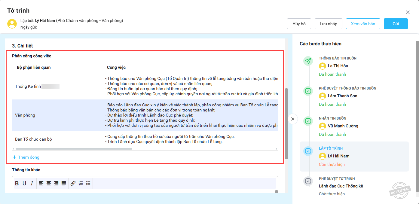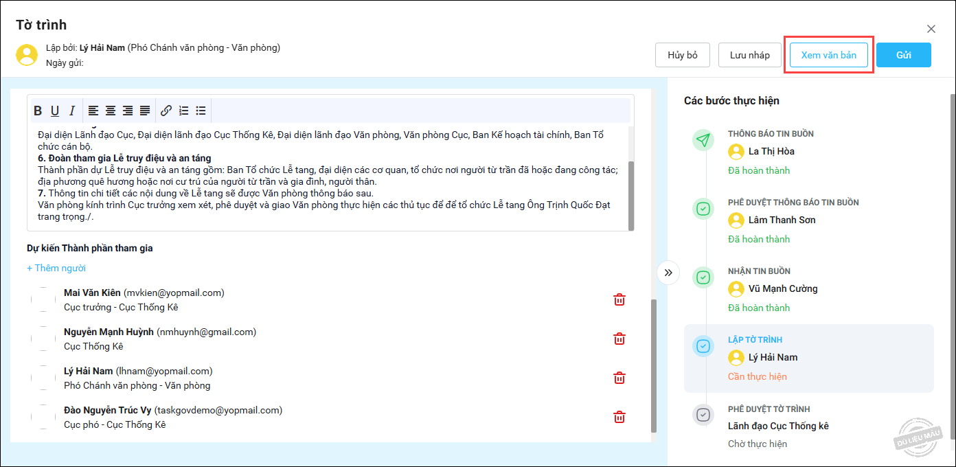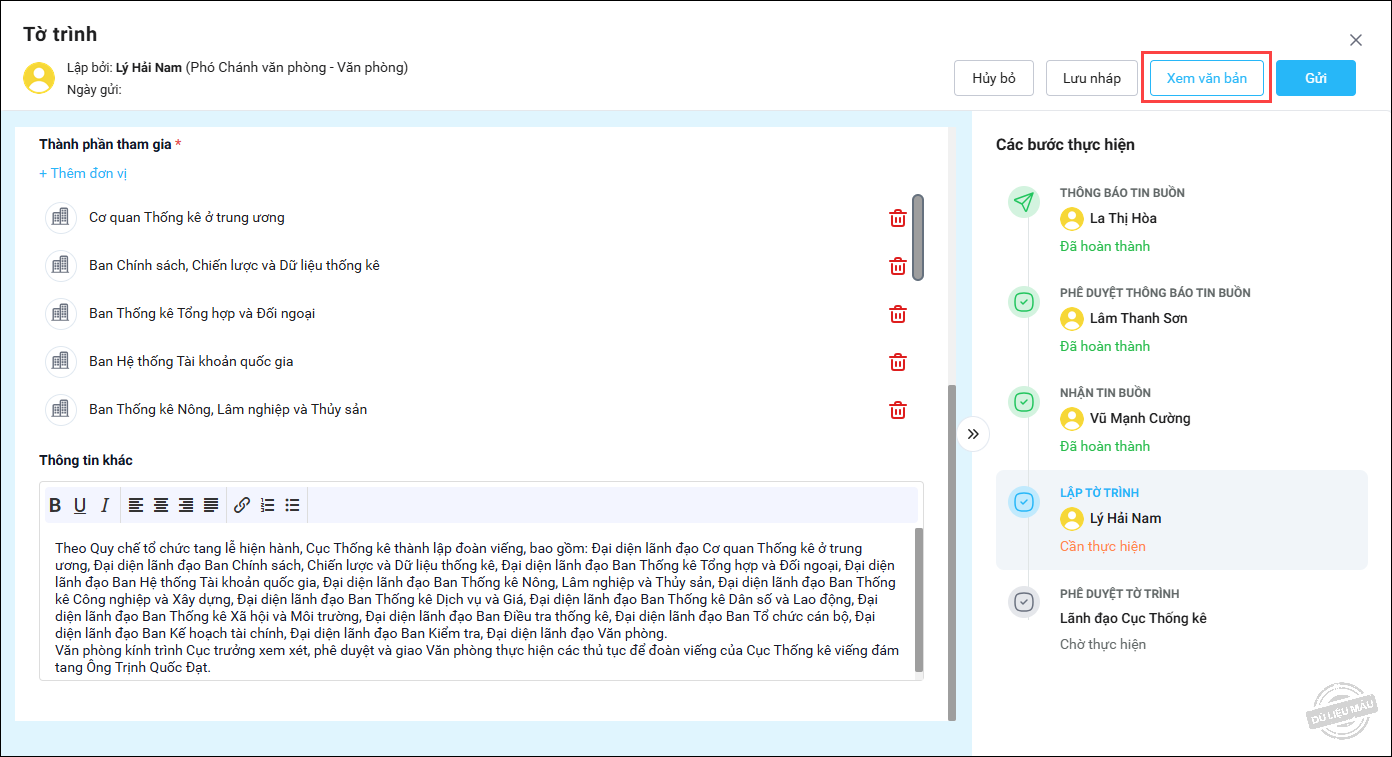 - Sau khi thông báo tin buồn được phê duyệt, thông báo sẽ được gửi đến người có trách nhiệm lập tờ trình thành lập đoàn viếng hoặc tổ chức lễ tang, tùy thuộc vào quy chế của đơn vị/ngành.