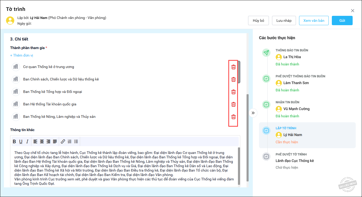 Lưu ý: Tùy thuộc vào Đối tượng mất, bước lập tờ trình sẽ do lãnh đạo đơn vị hoặc lãnh đạo Văn phòng Cục Thống kê thực hiện theo quy chế ngành.