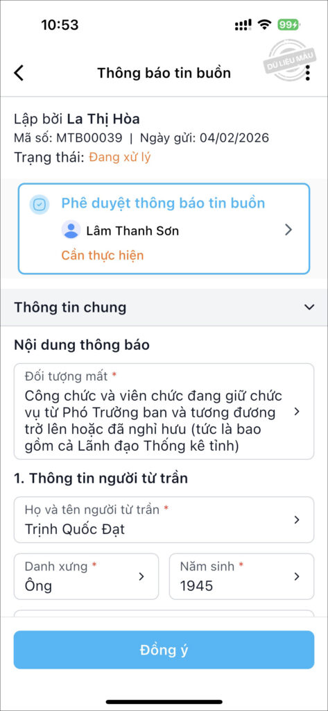 - Nếu nội dung thông báo tin buồn đã chính xác, nhấn Đồng ý.